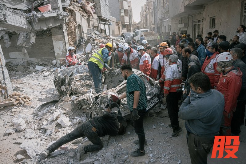 3月24日,在伊朗东阿塞拜疆省大不里士,救援人员在一处遭袭的住宅楼附近查看情况。 新华社/美联