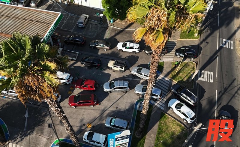 3月25日,车辆在智利圣地亚哥一处加油站排队等待加油。3月26日起,汽油价格每升上涨超370智利比索,涨幅超44%;柴油价格每升上涨约580智利比索,涨幅超50%。 新华社记者 周佳谊 摄