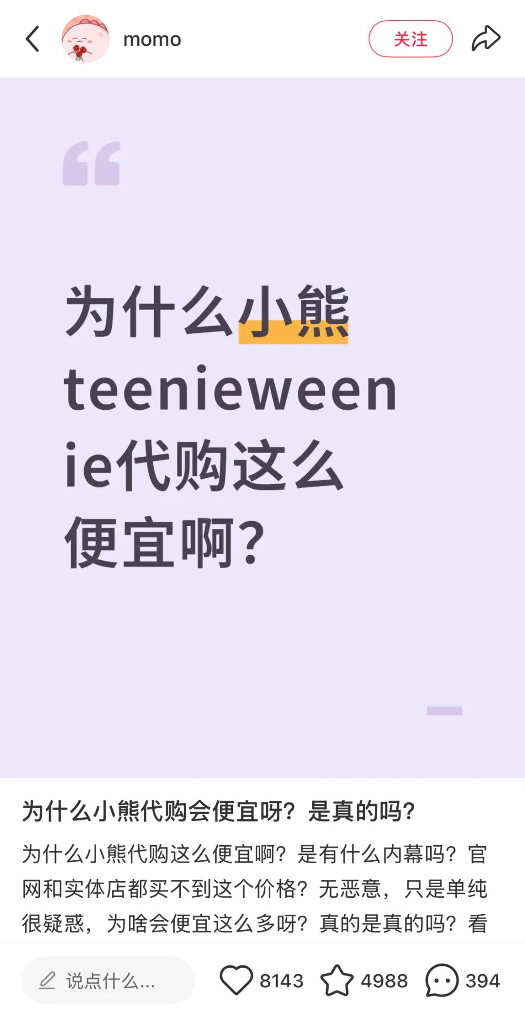 对Teenie Weenie的代购讨论帖 | 图源:小红书@momo(已获授权)
