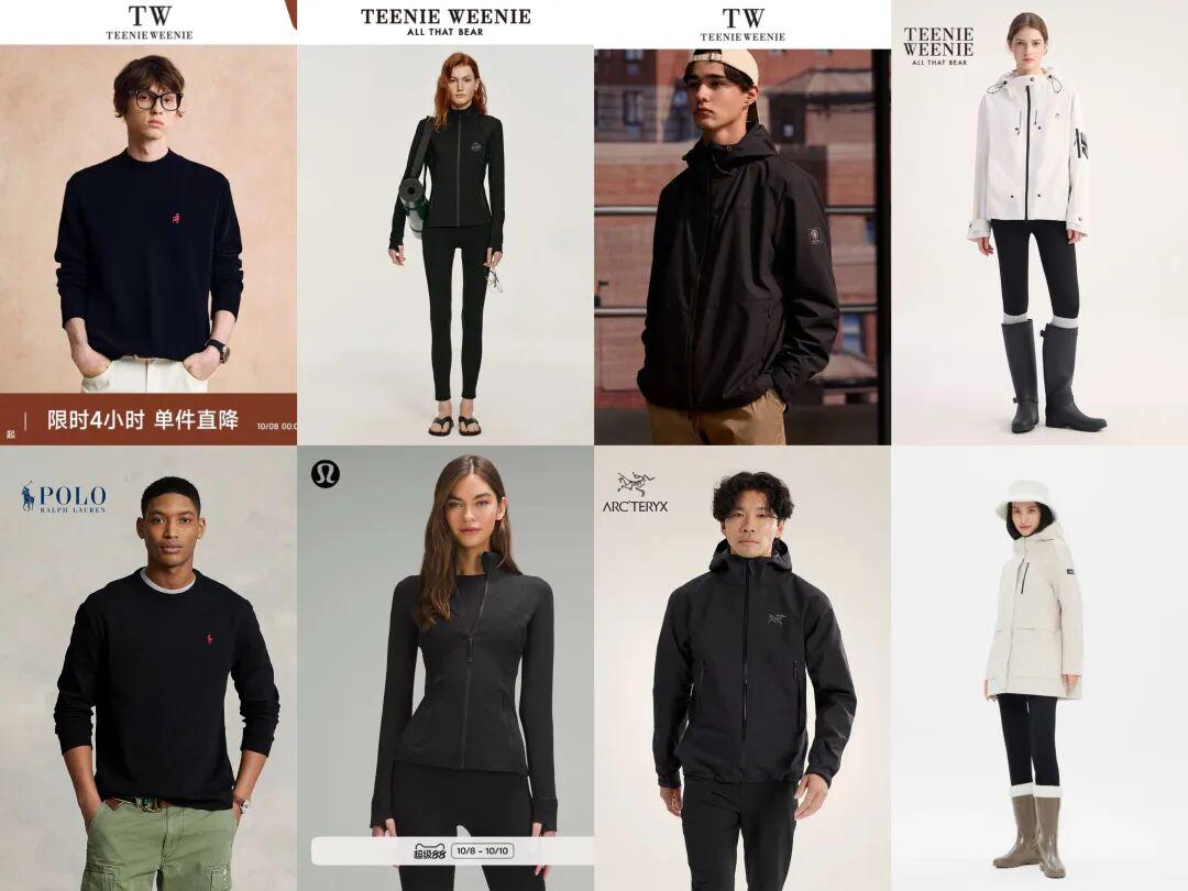 上:Teenie Weenie,下:拉夫劳伦、Lululemon、始祖鸟、艾高 | 图源:天猫官方旗舰店