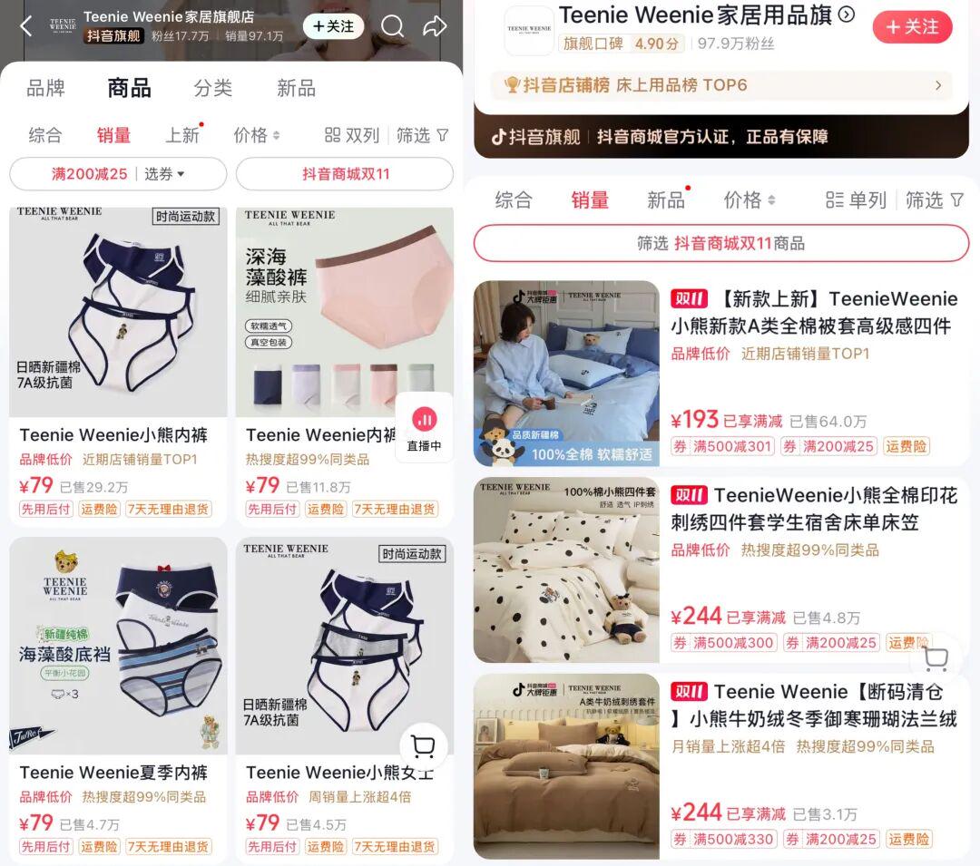此外,通过IP授权,Teenie Weenie甚至将品类延伸到了内裤、家居服、大豆被、女包还有童鞋。