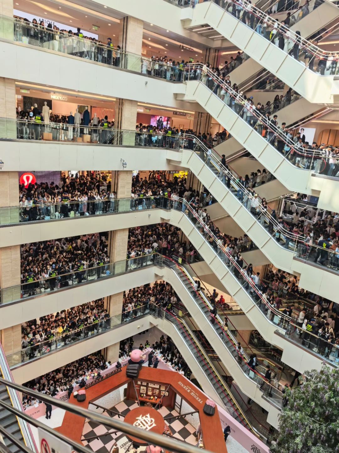 这场品牌在西安某购物中心举办的旗舰店开业快闪,吸引了超4万人聚集。