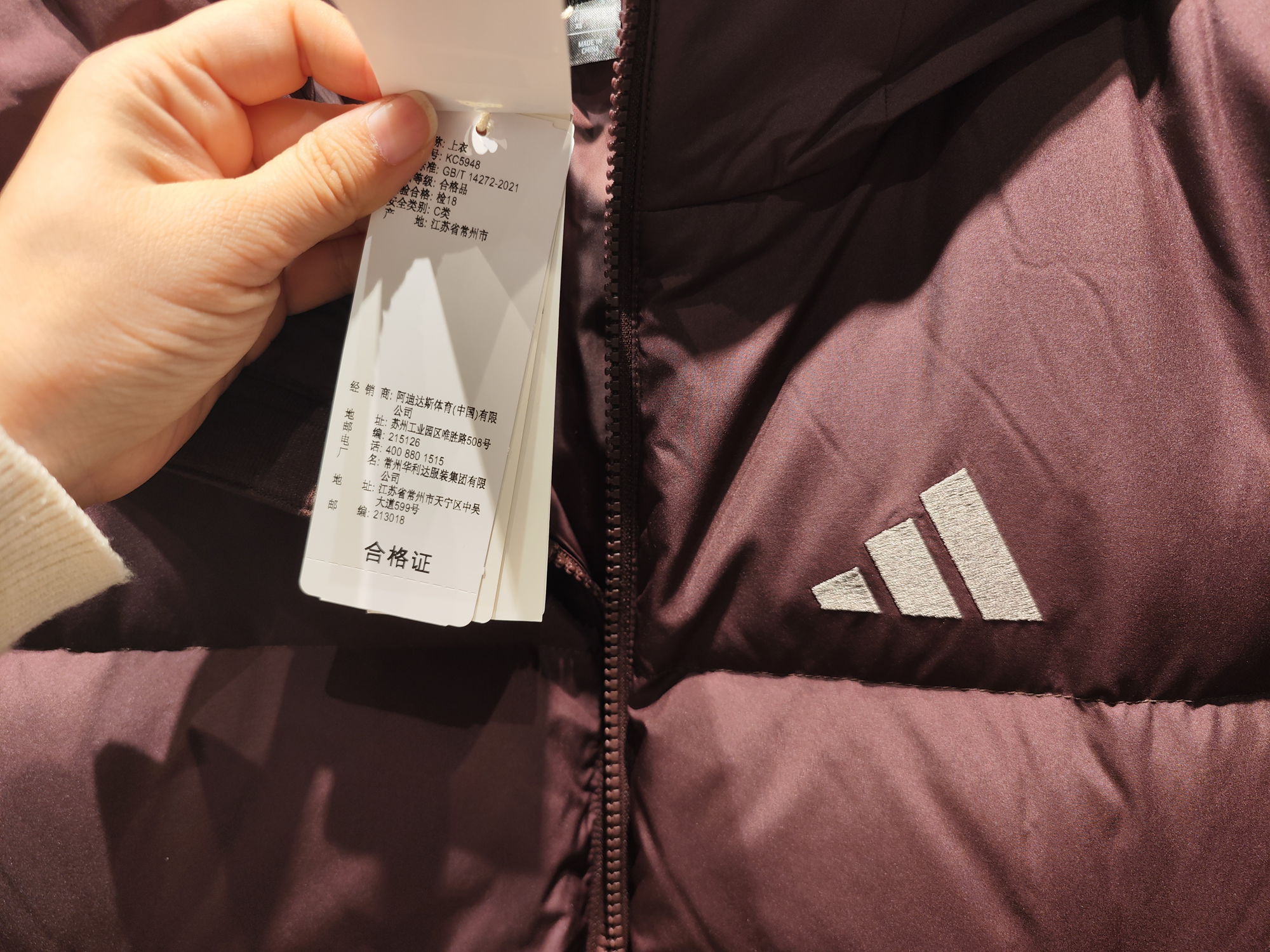 阿迪达斯一款由雪中飞代工的羽绒服 每经记者 孙宇婷 摄
